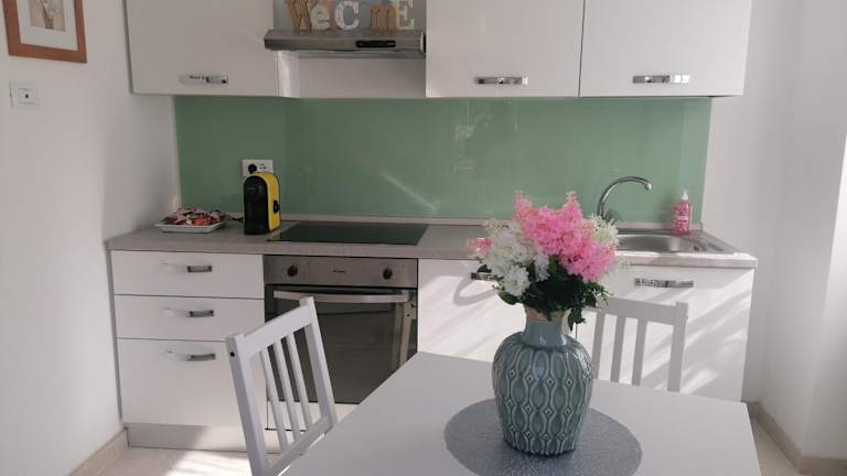 Das Ferienhaus beinhaltet 2 Schlafzimmer, ein Wohnzimmer, ein Badezimmer mit einem Bidet und einer Dusche sowie eine gut ausgestattete Küche. Zur Ausstattung gehören ein Satelliten-Flachbild-TV, Handtücher und Bettwäsche. Eine Terrasse und Gartenblick sind ebenfalls vorhanden.