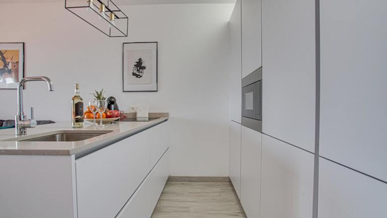 Das Ferienhaus ist ausgestattet mit zwei Schlafzimmern, einer Küche, die über einen Kühlschrank und eine Mikrowelle verfügt, sowie einem Badezimmer mit Dusche und kostenlosen Pflegeprodukten. Zu den Annehmlichkeiten zählt auch eine Waschmaschine. Es gibt ebenfalls einen Veranda und Gartenmöbel zur Verfügung.