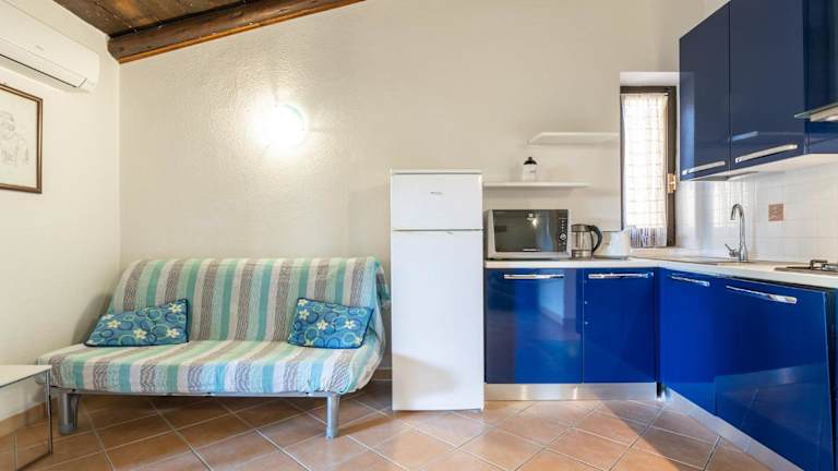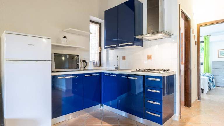 Das Ferienhaus umfasst zwei klimatisierte Schlafzimmer sowie ein Badezimmer, das mit einem Bidet, einer Dusche und einem Haartrockner ausgestattet ist. Die Küche verfügt über einen Kühlschrank, Geschirrspüler, Ofen, Kaffeemaschine und Wasserkocher.