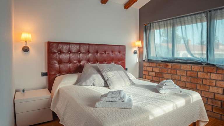 Das Ferienhaus ist klimatisiert und umfasst ein Schlafzimmer, ein Wohnzimmer sowie eine voll ausgestattete Küche mit Kühlschrank und Kaffeemaschine. Es gibt ein Badezimmer mit Bidet und Dusche. Handtücher und Bettwäsche sind ebenfalls vorhanden.