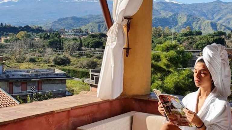 Die Unterkunft befindet sich etwa 8,1 km von der Oberschstation der Taormina Seilbahn entfernt und ist 2,4 km vom Strand Giardini Naxos und etwa 10 km von Isola Bella entfernt. Der Flughafen Catania Fontanarossa ist 51 km entfernt, und es wird ein kostenpflichtiger Flughafentransfer angeboten.