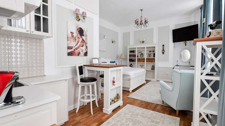 Die Wohneinheiten sind mit einer voll ausgestatteten Küche, einem Esstisch, einem Flachbild-TV mit Satellitenkanälen und einem eigenen Badezimmer mit Dusche sowie kostenlosen Pflegeprodukten und einem Haartrockner ausgestattet. Zur Küchenausstattung gehören ein Kühlschrank, eine Herdplatte, ein Toaster und eine Kaffeemaschine.