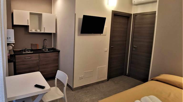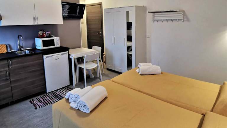 Die Wohneinheiten sind mit einem eigenen Badezimmer ausgestattet und verfügen über Annehmlichkeiten wie Klimaanlage, TV, Kühlschrank, Mikrowelle und Kaffeemaschine.