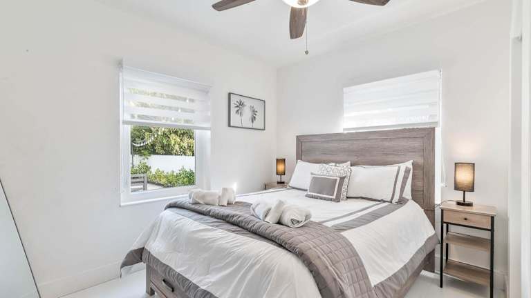 Das Ferienhaus verfügt über 3 separate Schlafzimmer, ein Wohnzimmer, eine voll ausgestattete Küche mit Kühlschrank und Geschirrspüler sowie 2 Badezimmer. Zur Ausstattung gehören außerdem Klimaanlage, TV und kostenloses WLAN.