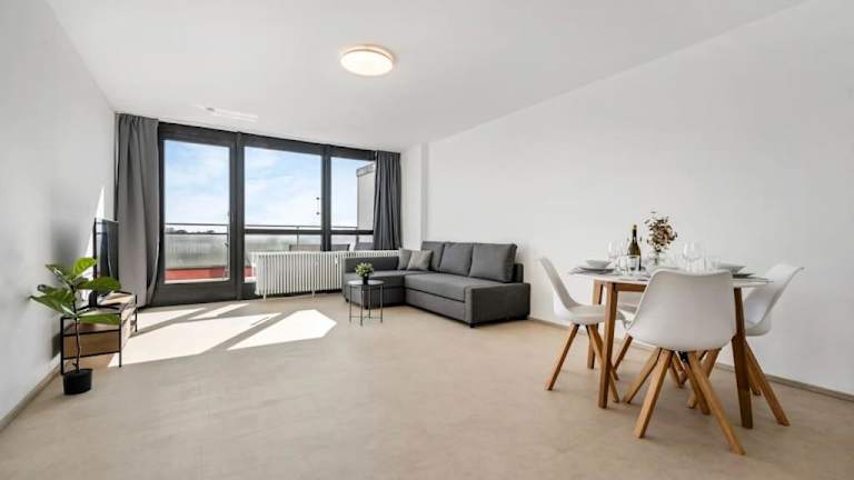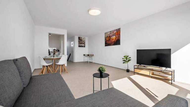 Die Ferienwohnung verfügt über ein Schlafzimmer, ein Wohnzimmer sowie eine gut ausgestattete Küche, die mit einem Kühlschrank und einem Ofen versehen ist. Handtücher und Bettwäsche werden bereitgestellt.