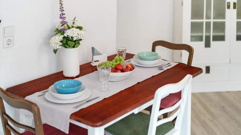 Die Ferienwohnung umfasst ein Schlafzimmer und ein Badezimmer, eine voll ausgestattete Küche sowie eine Terrasse mit Gartenblick. Zur Ausstattung gehören Bettwäsche, Handtücher und ein TV mit Kabelkanälen. Die Unterkunft ist als Nichtraucherunterkunft konzipiert.