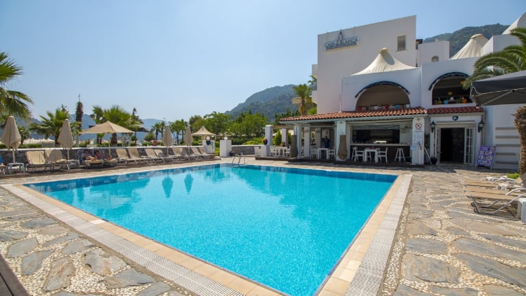 Das Hotel Casa Blanca liegt an der berühmten Küste der türkis schimmernden Ägäis und ist nur ca. 200 m vom Zentrum von Içmeler entfernt. Von hier aus können Sie bequem verschiedene Restaurants, Bars, Nachtclubs, Geschäfte und den Busbahnhof erreichen. Der Strand ist nur etwa 10 m vom Hotel entfernt. Für Ausflüge nach Marmaris stehen öffentliche Minibusse zur Verfügung, die etwa 50 m vom Hotel abfahren. Der Flughafen Dalaman ist etwa 90 km entfernt.