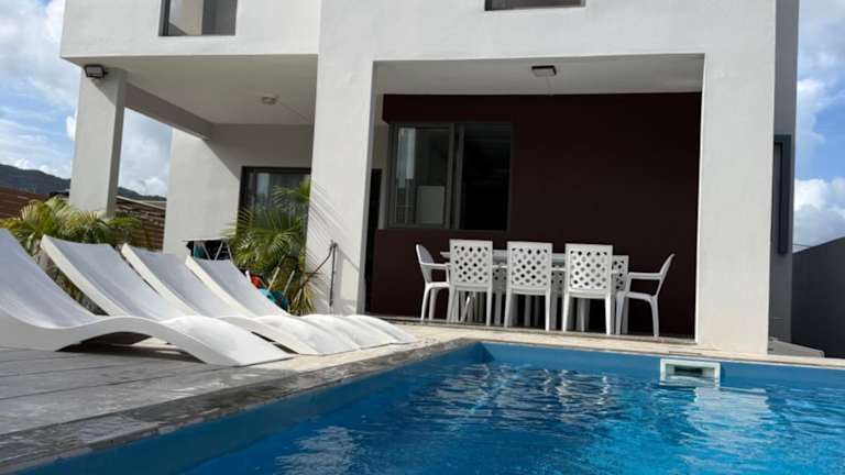 Casa Blue Print Mahebourg bietet Übernachtungsmöglichkeiten mit Poolblick. Die Unterkunft verfügt über einen eigenen Pool, einen Garten, Grillmöglichkeiten und kostenloses WLAN. Es steht den Gästen auch ein kostenloser Privatparkplatz zur Verfügung. Die Villa ist mit einem Essbereich, einer voll ausgestatteten Küche und einer Terrasse ausgestattet, die einen Blick auf die Berge bietet.