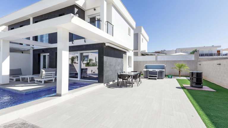 Das Casa Bos Dolphin Pool Jacuzzi 6p in Puerto Marino ist eine ideale Unterkunft für einen entspannten Urlaub. Die Villa bietet kostenfreies WLAN, einen eigenen Pool und einen Whirlpool. Sie verfügt über 3 Schlafzimmer, ein geräumiges Wohnzimmer mit Kabel-TV, eine voll ausgestattete Küche und 3 Badezimmer mit kostenfreien Pflegeprodukten. Der Garten mit Grillmöglichkeiten lädt zum Verweilen ein. Die Villa liegt in der Nähe des Bahnhofs Alicante und des Golfplatzes Alicante. Der Flughafen Alicante-Elche Miguel Hernández ist nur 6 km entfernt.