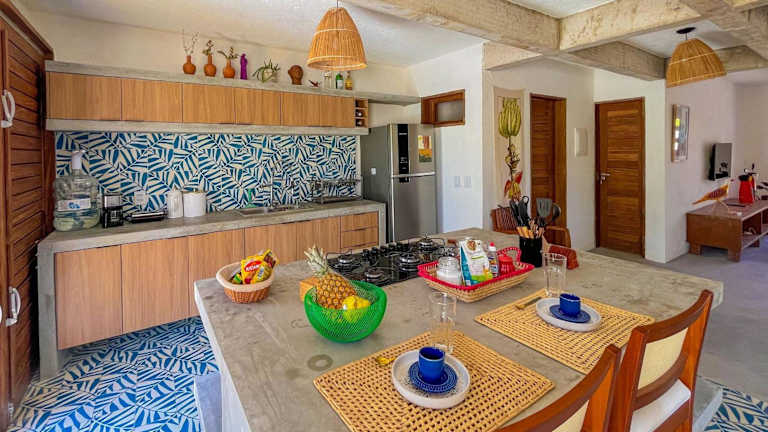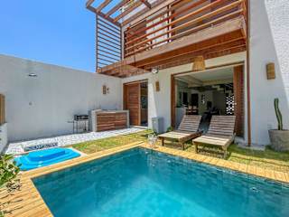 Casa Brise Seu Refúgio Tropical - Hosti ist ein Ferienhaus, das Übernachtungsmöglichkeiten mit einem Balkon und kostenlosem WLAN bietet. Es verfügt über einen eigenen Pool, einen Garten sowie kostenlosen Privatparkplatz. Diese Unterkunft ist auf 2 separate Schlafzimmer, eine voll ausgestattete Küche mit Kühlschrank und Ofen sowie 3 Badezimmer ausgelegt.