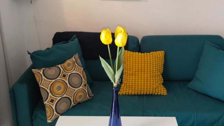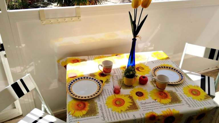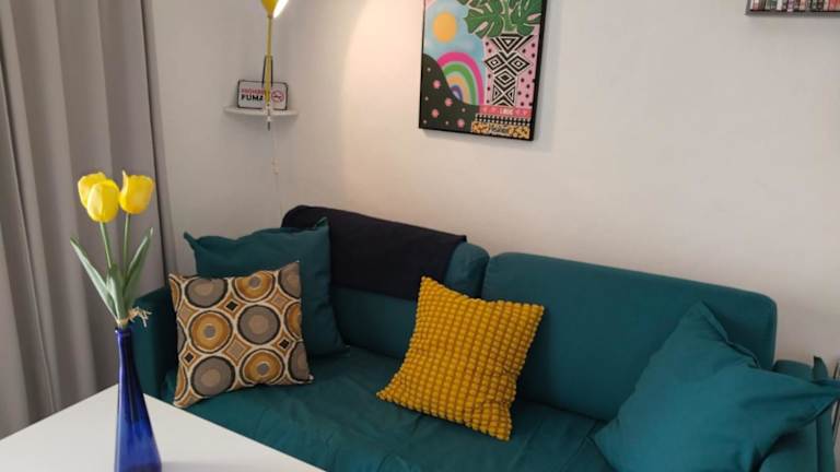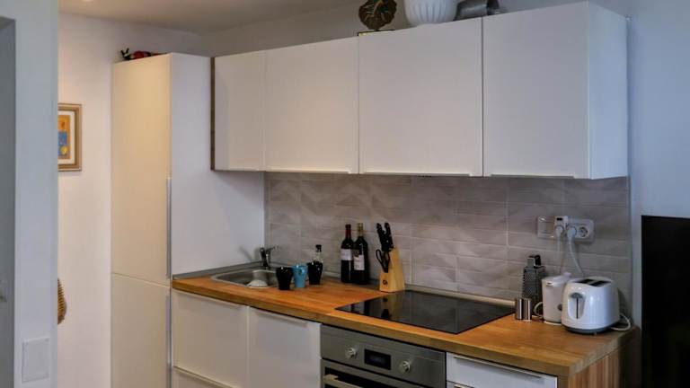 Die Ferienwohnung umfasst ein Schlafzimmer, ein Wohnzimmer sowie eine voll ausgestattete Küche mit Kühlschrank und Kaffeemaschine. Das Badezimmer ist mit einer Dusche ausgestattet. Zur Ausstattung gehören Klimaanlage, WLAN und ein Balkon. Handtücher und Bettwäsche werden bereitgestellt.
