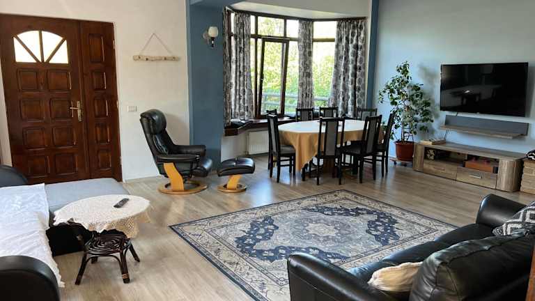 Die Villa befindet sich in einer günstigen Lage, nur 19 km vom George Enescu Memorial House entfernt. Die Burg Stirbey ist ebenfalls nur 17 km entfernt. Sie können die schöne Aussicht auf die Berge und die umliegende Natur von der Terrasse aus genießen. Das Salzbergwerk Slanic ist ebenfalls einen Besuch wert und liegt nur 49 km entfernt. Der internationale Flughafen Bukarest Henri Coandă ist mit einer Entfernung von 93 km gut erreichbar.