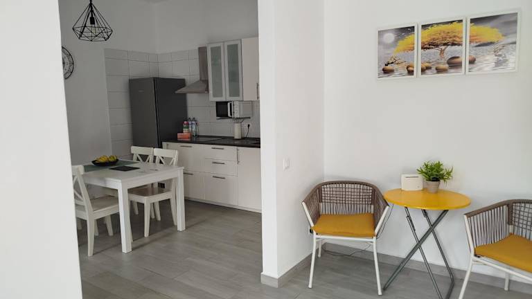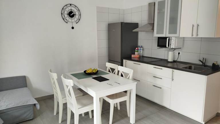 Das Ferienhaus bietet Platz in 2 Schlafzimmern und einem Wohnzimmer. Es verfügt über eine voll ausgestattete Küche mit Kühlschrank und Kaffeemaschine, sowie ein Badezimmer mit Dusche und kostenlosen Pflegeprodukten. Handtücher und Bettwäsche werden bereitgestellt.