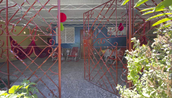 Das Haus liegt nur 100 Meter vom Strand. Das Haus hat eine Küche , Bad, Terrasse für Wäsche waschen und trocknen und einen Garten mit überdachter Terrasse und Hängematten. Diese Zimmer sind im Haus : eine Halle mit Küche und einem Bett 160x200 und Schrank und einem Ventilator. ein großes Schlafzimmer mit Kleidkammer und Klimaanlage und Betten 140x200 und 90x200 für bis zu drei Personen ein kleines Schlafzimmer mit einem Ventilator und einer Kleidkammer mit einem Bett für zwei Personen 140x200