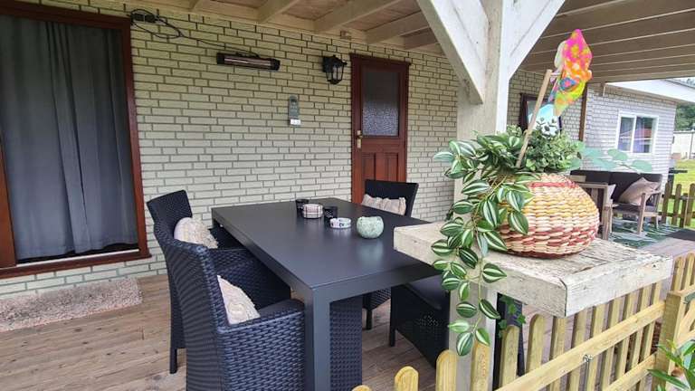 Das Chalet verfügt über ein Schlafzimmer, eine Küche mit Kühlschrank und Ofen, einen Flachbild-TV, einen Sitzbereich und ein Badezimmer mit Dusche. Handtücher und Bettwäsche werden bereitgestellt. Es gibt auch eine Terrasse sowie eine Veranda/Patiobereich.