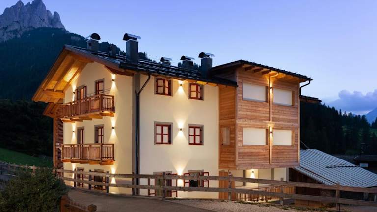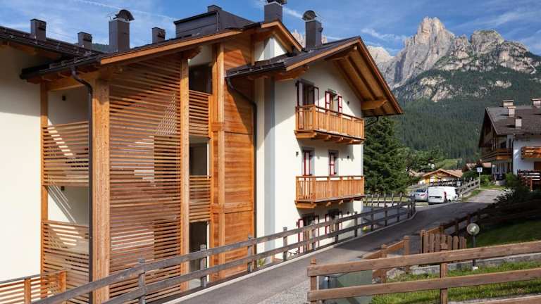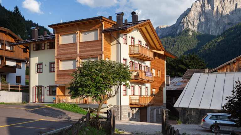 Situierung in Pozza di Fassa, 15 km vom Karersee entfernt. 24 km von den Passstraßen Pordoijoch und Sellajoch. Der nächstgelegene Flughafen ist Bolzano, 45 km entfernt.