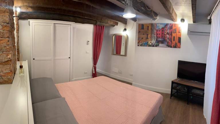 Die Ferienwohnung beinhaltet ein Schlafzimmer und ein Badezimmer, ausgestattet mit einem Bidet, einer Dusche und einem Haartrockner. Handtücher und Bettwäsche werden zur Verfügung gestellt.