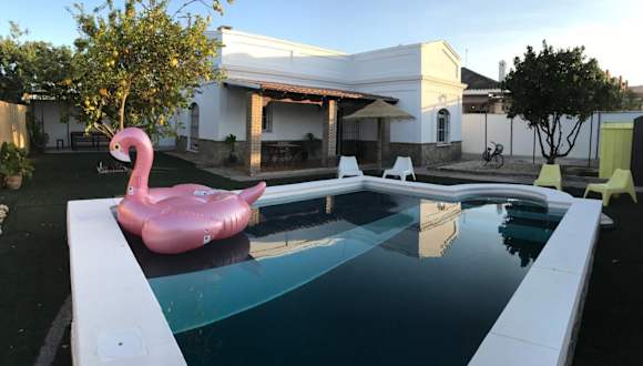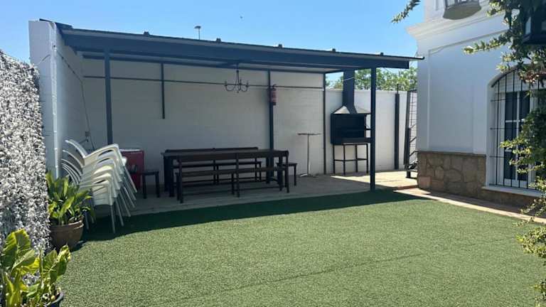 Verbringen Sie einen entspannten und komfortablen Aufenthalt im Casa con Piscina en Sanlucar de Barrameda. Dieses Ferienhaus bietet Ihnen eine Terrasse, einen eigenen Pool und einen Garten. Genießen Sie den Blick auf den Garten und die Annehmlichkeiten wie eine voll ausgestattete Küche, einen Flachbild-TV und kostenfreie Privatparkplätze. Die Lage des Ferienhauses ermöglicht es Ihnen, die umliegende Region zu erkunden, einschließlich des Montecastillo Golf Resorts und der Kathedrale von Jerez.