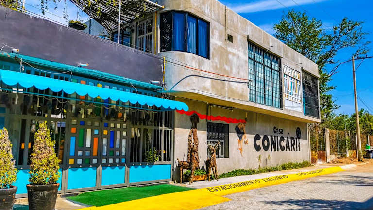 Das Casa Conicarit in Puerto Escondido ist eine ideale Unterkunft für einen entspannten Urlaub. Mit einem Außenpool, einer Gemeinschaftslounge und einer Terrasse bietet das Hotel den perfekten Ort, um die Sonne zu genießen und sich zu erholen. Die Zimmer sind modern eingerichtet und verfügen über Annehmlichkeiten wie einen Flachbild-TV und einen Safe. Die Unterkunft bietet außerdem eine Gemeinschaftsküche und kostenfreies WLAN. In der Nähe des Hotels befinden sich beliebte Sehenswürdigkeiten wie der Strand Bacocho, der Strand Carrizalillo und der Strand Playa Puerto Ángelito. Der internationale Flughafen Puerto Escondido ist nur 2 km entfernt.