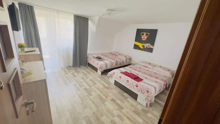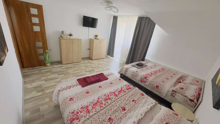 Das klimatisierte Apartment im Casa cu Balcon verfügt über 4 Schlafzimmer, die Platz für eine größere Gruppe bieten. Es gibt auch 3 Badezimmer mit Dusche und kostenlosen Pflegeprodukten. Handtücher und Bettwäsche werden gestellt, um den Gästen einen komfortablen Aufenthalt zu ermöglichen. Eine voll ausgestattete Küchenzeile mit Kühlschrank ist ebenfalls vorhanden.