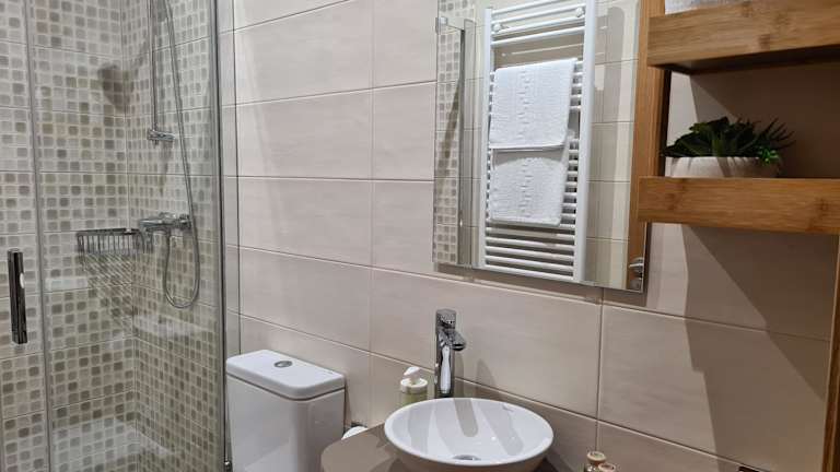 Das Apartment im Casa da Marquesa Sarria bietet einen gemütlichen Aufenthalt mit allen Annehmlichkeiten, die Sie benötigen. Das Apartment verfügt über einen Balkon, einen komfortablen Sitzbereich und einen Flachbild-TV. Die voll ausgestattete Küche bietet einen Kühlschrank, eine Mikrowelle, ein Kochfeld, einen Toaster und eine Kaffeemaschine. Das private Badezimmer ist mit einer Dusche und kostenlosen Pflegeprodukten ausgestattet.