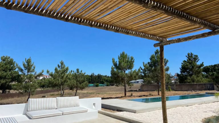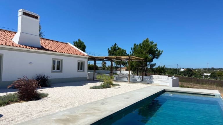 Die Unterkunft Casa da Pergola - Beach Design Villa Private Pool bietet eine ansprechende Atmosphäre mit Blick auf den Pool, einem eigenen Pool und einer Veranda/Patiobereich. Die Villa ist von einem Garten umgeben und bietet unter anderem Grillmöglichkeiten sowie kostenfreies WLAN und Privatparkplätze.
