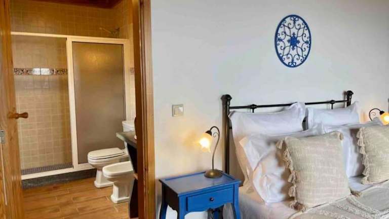 Das Ferienhaus umfasst zwei Schlafzimmer, ein Wohnzimmer sowie eine voll ausgestattete Küche mit Kühlschrank und Kaffeemaschine. Es stehen zwei Badezimmer mit Bidet und Dusche zur Verfügung. Handtücher und Bettwäsche sind ebenfalls vorhanden.