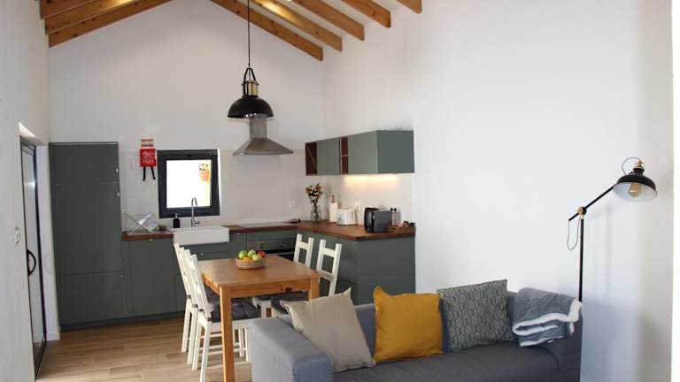Das Ferienhaus ist klimatisiert und umfasst 2 Schlafzimmer, ein Wohnzimmer sowie eine voll ausgestattete Küche, die über einen Kühlschrank und eine Kaffeemaschine verfügt. Es gibt ein Badezimmer mit Dusche und Haartrockner. Handtücher und Bettwäsche sind ebenfalls vorhanden.