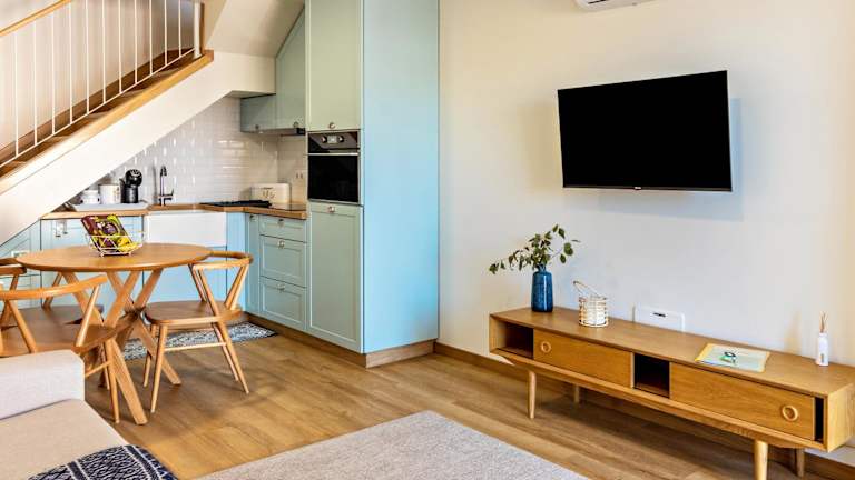 Das Ferienhaus umfasst ein Schlafzimmer, ein Badezimmer, Bettwäsche und Handtücher. Zur Ausstattung gehört ein TV mit Kabelkanälen sowie eine voll ausgestattete Küche. Außerdem verfügt es über eine Terrasse mit Blick auf die Stadt.
