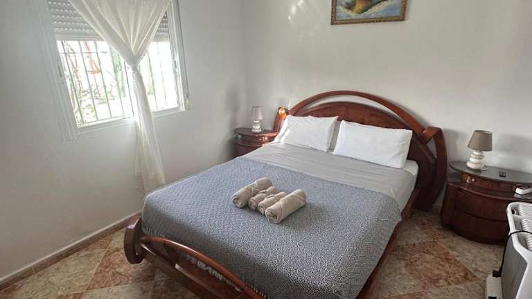 Das Ferienhaus umfasst 2 Schlafzimmer, ein Wohnzimmer sowie eine voll ausgestattete Küche mit Kühlschrank und Kaffeemaschine. Es gibt ein Badezimmer mit Bidet und Dusche, und Handtücher sowie Bettwäsche werden bereitgestellt. Klimaanlage ist ebenfalls vorhanden. Zur Ausstattung zählen zudem Gemeinschaftsbereiche mit TV.