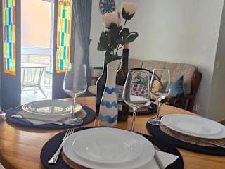 Die Casa de la Felicidad cerca de la playa bietet Übernachtungsmöglichkeiten in einer Ferienwohnung, die von einem privaten Gastgeber geführt wird. Die Unterkunft beinhaltet eine Veranda/Pati, einen Balkon sowie eine Terrasse und verfügt über kostenfreies WLAN. Die Mindestalter für den Check-in beträgt 18 Jahre.