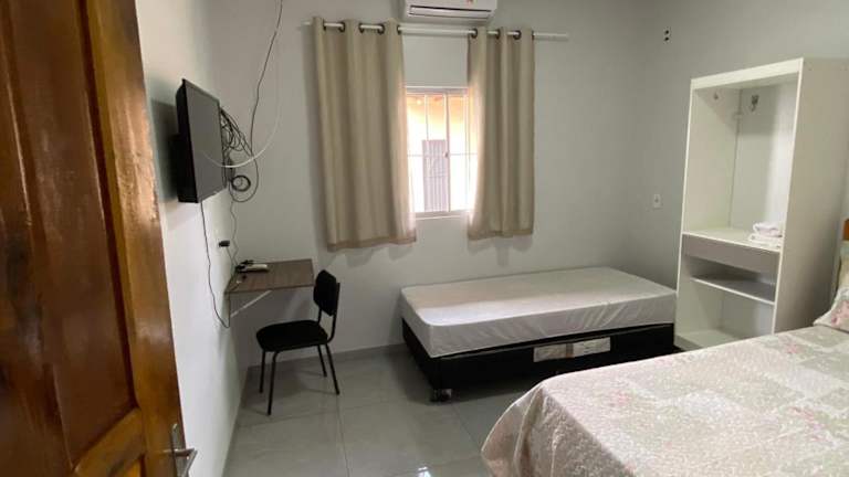 Das Casa de temporadas Simone/ Rafael ist eine gemütliche Unterkunft in Carolina, die Ihnen einen angenehmen Aufenthalt bietet. Mit einer voll ausgestatteten Küche, einem separaten Schlafzimmer und einem komfortablen Wohnzimmer ist dieses klimatisierte Ferienhaus ideal für einen entspannten Urlaub. Darüber hinaus können Sie die Terrasse und die kostenfreien Privatparkplätze nutzen. Die Nähe zu den Itapecuru-Wasserfällen und dem Flughafen Brigadeiro Lysias Augusto Rodrigues macht diese Unterkunft zu einem idealen Ausgangspunkt für Ihre Erkundungen in der Region.
