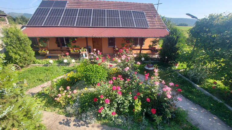 Das Casa de vacanta in Tara Fagarasului bietet eine gemütliche Unterkunft mit zwei separaten Schlafzimmern, einer voll ausgestatteten Küche und einem Badezimmer. Der Balkon bietet einen schönen Blick auf den Garten und der Flachbild-TV sorgt für Unterhaltung.