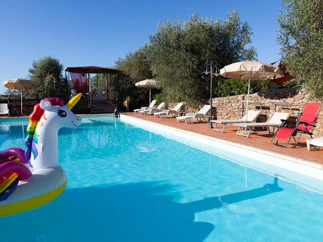 Das Freizeitangebot umfasst Möglichkeiten zum Wandern in der Umgebung und Aktivitäten wie Tauchen und Reiten, die gegen Gebühr angeboten werden. Gäste können sich am saisonalen Außenpool entspannen oder die Gartenmöbel nutzen.