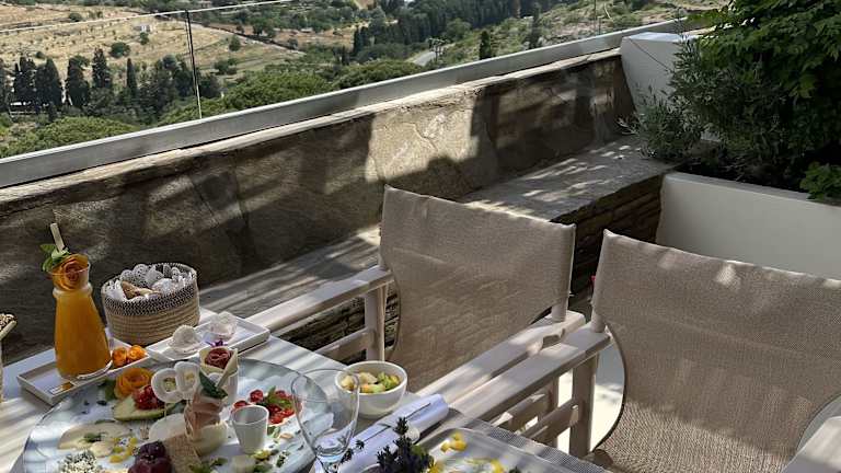 • Die Aussicht von den Suiten über Andros ist atemberaubend schön.