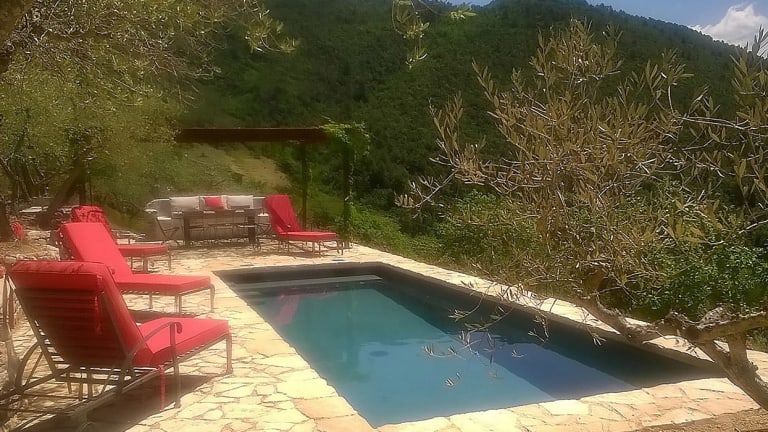 In der Nähe der Villa können Sie wandern und die atemberaubende Natur erkunden. Der Außenpool bietet eine erfrischende Abkühlung an warmen Tagen und der Garten lädt zum Entspannen ein.