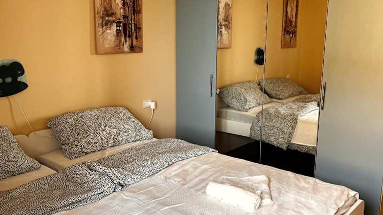 Die Ferienwohnung umfasst 2 Schlafzimmer, ein Wohnzimmer sowie eine voll ausgestattete Küche mit Kühlschrank. Das Badezimmer ist mit einem Bidet und einem Haartrockner ausgestattet. Zur Ausstattung gehört weiterhin ein Flachbild-TV mit Satellitenkanälen.