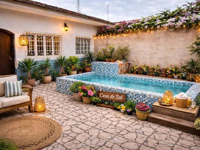 Die Casa ampla com piscina 4 quadras da praia, Espaço gourmet churrasqueira bietet eine Unterkunft mit mehreren Annehmlichkeiten wie einem Außenpool, einer Terrasse sowie Meer- und Poolblick. Kostenloses WLAN steht zur Verfügung, und es kann ein Privatparkplatz gegen Aufpreis bereitgestellt werden.