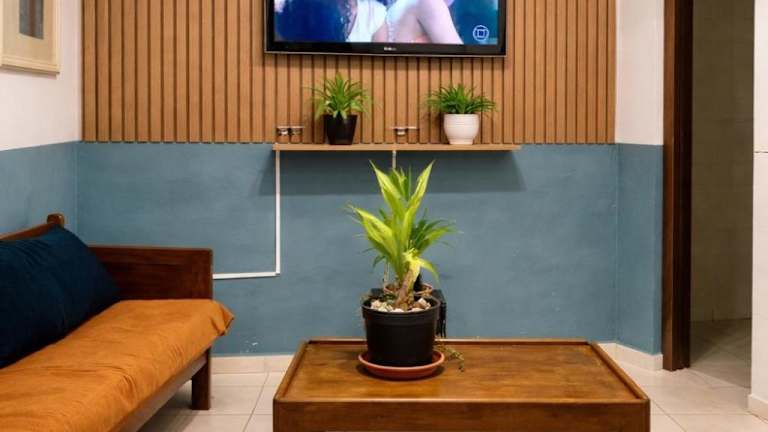 Jedes Zimmer ist ausgestattet mit einem Schreibtisch, einem Flachbild-TV, einem Gemeinschaftsbad und einem Kühlschrank.