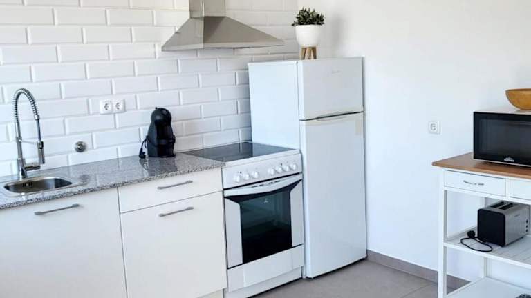Die Unterkünfte sind mit einer komplett ausgestatteten Küche mit Kühlschrank ausgestattet, was die Selbstverpflegung erleichtert.