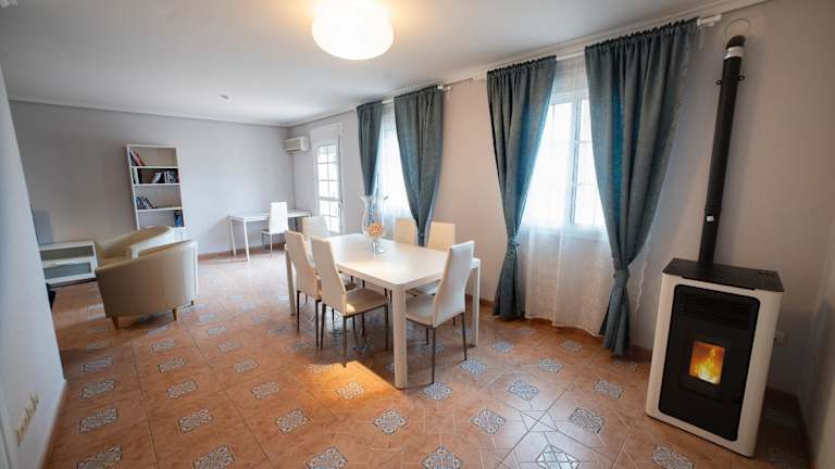 Das klimatisierte Ferienhaus im CASA DOVELA verfügt über 4 Schlafzimmer, ein geräumiges Wohnzimmer, eine voll ausgestattete Küche mit Kühlschrank und Kaffeemaschine sowie 3 Badezimmer mit Bidet und Dusche. Handtücher und Bettwäsche werden den Gästen zur Verfügung gestellt. Die Unterkunft bietet zudem eine Terrasse und einen Balkon, von denen aus man einen herrlichen Blick auf die umliegenden Berge genießen kann.