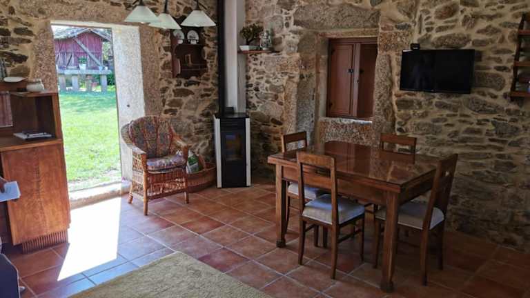 Das Casa Eido Vello verfügt über ein gemütliches Schlafzimmer, in dem Sie sich nach einem ereignisreichen Tag entspannen können. Das Wohnzimmer ist mit einem Flachbild-TV ausgestattet und lädt zum Entspannen ein. Die voll ausgestattete Küche bietet Ihnen die Möglichkeit, Ihre eigenen Mahlzeiten zuzubereiten, und der Essbereich ist ideal für gemeinsame Mahlzeiten. Im Badezimmer finden Sie eine Dusche und eine Waschmaschine für Ihren Komfort. Das Haus bietet auch eine Terrasse, auf der Sie die frische Luft und den Gartenblick genießen können.