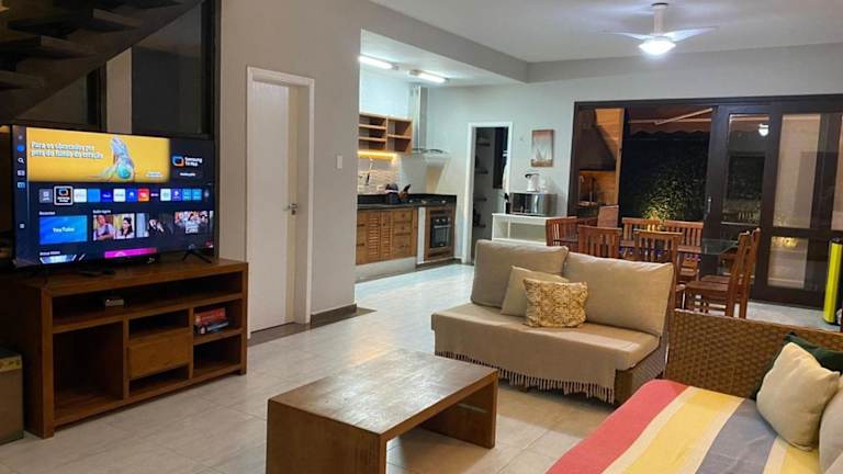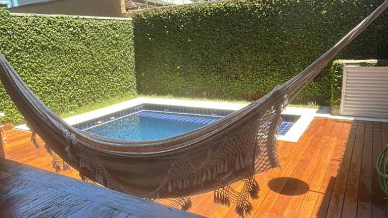 Das Ferienhaus Casa em Condomínio com Piscina Privativa liegt nur 1,3 km vom Strand Praia de Juqueí entfernt in Juquei. In der näheren Umgebung befindet sich der Parque Estadual Restinga de Bertioga, der 42 km entfernt ist, sowie Sunset Square in 15 km Entfernung.