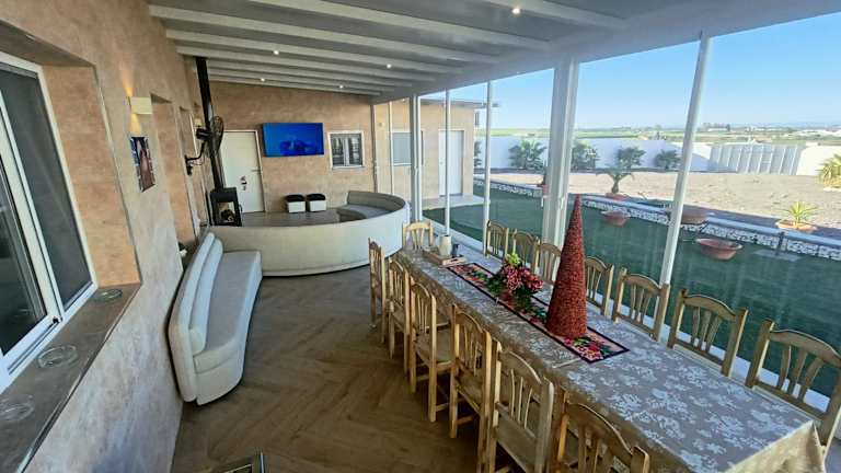 Das Casa FERTONIA in Fuentes de Andalucía ist ein traumhaftes Ferienhaus mit einem saisonalen Außenpool, einem wunderschönen Garten und einer Terrasse, die einen atemberaubenden Poolblick bietet. Das Haus verfügt über 5 klimatisierte Schlafzimmer, ein gemütliches Wohnzimmer und eine voll ausgestattete Küche. Die 4 Badezimmer bieten ausreichend Platz für alle Gäste. Zusätzlich gibt es einen eigenen Pool und kostenfreie Privatparkplätze. Die Lage des Ferienhauses ist ideal, da der Flughafen Sevilla nur 54 km entfernt ist.