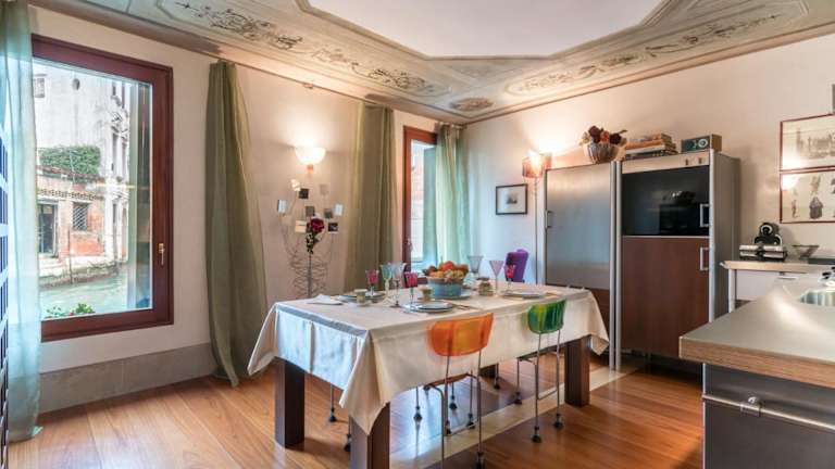Das Casa Flavia ai Morosini befindet sich in idealer Lage in Venedig, nur 600 m von der berühmten Rialtobrücke und 800 m vom Markusdom entfernt. Von hier aus können Sie die Schönheit der Stadt und das Flair der Lagune hautnah erleben. Besuchen Sie Sehenswürdigkeiten wie den Palast Ca' d'Oro und den Markusplatz, die sich in der Nähe des Ferienhauses befinden. Der Flughafen Venedig-Tessera ist bequem mit dem Auto erreichbar und bietet eine gute Anbindung an die Unterkunft.