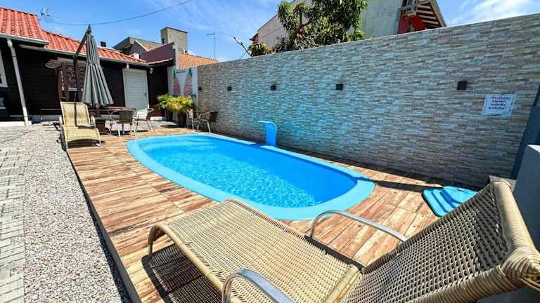 Die Unterkunft liegt in Bombinhas, 1,3 km vom Strand Praia de Bombas und 2,7 km vom Aussichtspark Bombinhas entfernt. Der nächstgelegene Flughafen ist der Flughafen Navegantes, der 55 km entfernt ist.
