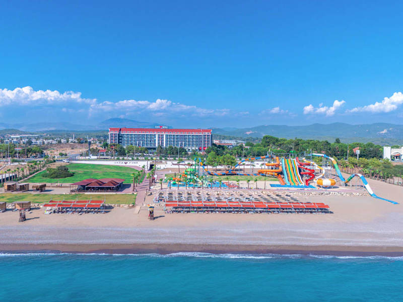 Lage: Das Hotel überblickt über das Blau des Mittelmeers in der Süd Küste Antalya. Die Siedlung liegt außerhalb von Side an einem friedlichen Ort, umgeben von so vielen Arten endemischer Bäume am Rande des Taurus Gebirges. Die Alt Stadt Kalelibelen, das Alara Schloss, Side und die Alt Stadt Side sind nur einige von Hunderten Attraktionen, die in der Umgebung verfügbar sind. Die Lage in der Mitte von 2 Flughäfen (Flughafen Antalya und Flughafen Gazipaşa) macht das Hotel mit so vielen verschiedenen Flugmöglichkeiten noch einfacher zu erreichen. Ausstattung: Das Hotel wurde im Jahre 2008 gebaut, und in diesem Jahre 2023 renoviert. Die YEY GROUPE investierte in die Gegend und gründete die Marke Casa Fora Beach Resort. Das Hotel verfügt über 350 Zimmer mit verschiedenen Ansichtsoptionen. Das Hotel verfügt über ein sehr großes Grundstück und hat eine Gesamtfläche von 70 Hektar. Die Strandeinrichtung verfügt über insgesamt 30 Hektar und das Baugebiet mit Hotelanlage verfügen über 40 Hektar. Die Strandeinrichtung bietet ihnen einen Wasserpark, ein À-la-carte-Restaurant (Fischrestaurant), einen Sandstrand mit Liegen, eine Snackbar, einen Yogabereich und ein Volleyballplatz. Im Gebäudebereich befinden sich die Zimmer, 2 weitere À-la-carte-Restaurants (ein türkisches Restaurant und ein italienisches Restaurant), ein Hauptrestaurant, eine Snackbar, ein geschlossenes Hallenbad, eine Lobby Bar, ein Spa – Center mit Fitnessraum und natürlich eine Einkaufsstraße mit verschiedenen Geschäften und einem Kiosk Markt. Für ihre Unterhaltung bieten wir ihnen ein Anfi -Theater, einen Kinderclub, ein Spielplatz mit Spielzimmer und diverse Aktivitäten an. Das Hauptgebäude ist aufgeteilt auf 3 Teile und ist auf flacher Ebene aufgestellt, so dass es für Sie sehr einfach ist, die Zimmer zu betreten. Es befinden sich behindertengerechte Zimmer in unserer Hotelanlage. Check-in/-out Service ist rund um die Uhr. Das WLAN-Internet ist im gesamten Hotelbereich verfügbar. Einen Schönheitssalon und Friseur bieten wir ihnen auch im Hauptgebäude an. Einen ärztlichen Service haben sie rund um die Uhr für eventuelle Notfälle. Einen Offenen Parkplatz im Hotelbereich bieten wir ihnen auch an.
