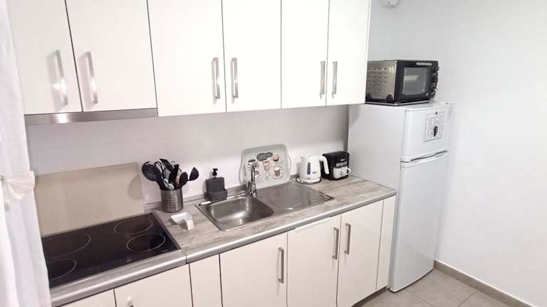 Das Ferienhaus ist klimatisiert und verfügt über zwei Schlafzimmer, ein Wohnzimmer sowie eine voll ausgestattete Küche mit Kühlschrank und Kaffeemaschine. Ein Badezimmer mit Dusche und kostenlosen Pflegeprodukten ist ebenfalls vorhanden. Handtücher und Bettwäsche werden bereitgestellt.