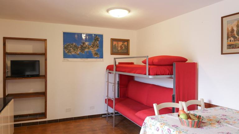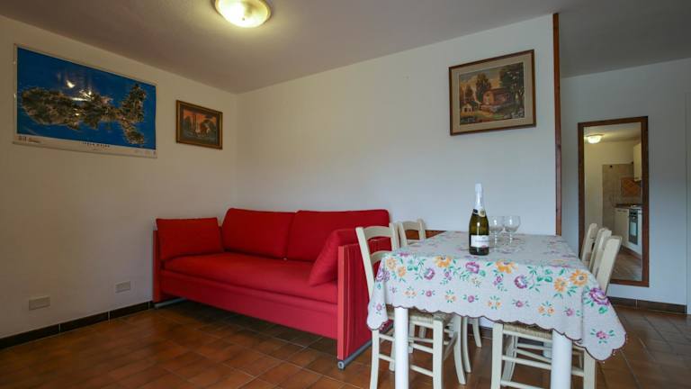 Das Ferienhaus umfasst ein Schlafzimmer, ein Wohnzimmer sowie eine voll ausgestattete Küche mit Kühlschrank und Kaffeemaschine. Zusätzlich stehen ein Badezimmer mit Bidet und Dusche und ein Flachbild-TV zur Verfügung.