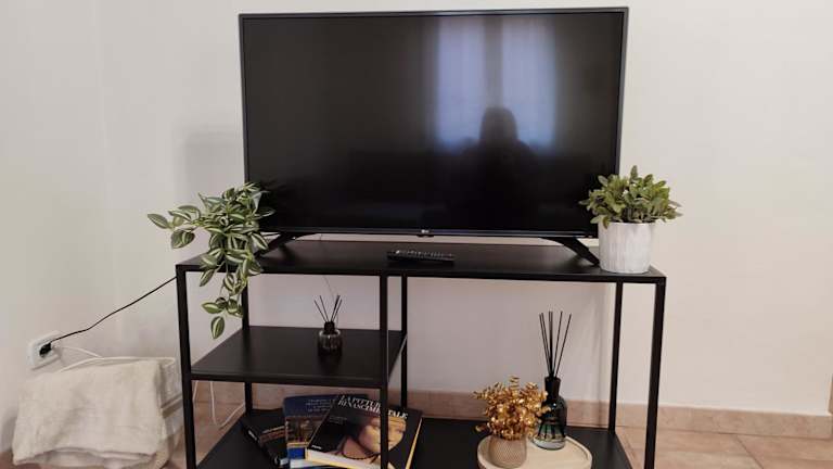 Die Ferienwohnung verfügt über ein Schlafzimmer, ein Wohnzimmer mit einem Flachbild-TV und eine voll ausgestattete Küche.